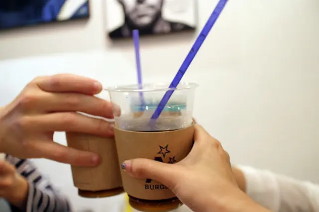 看到可樂和杯子分裝上桌,真的是韓國來的沒錯,在韓國就是這樣喝飲料沒錯啊,透明杯裡還有酌量冰塊呢!