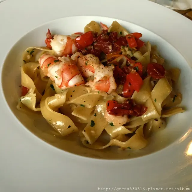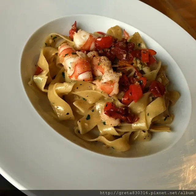 義大利麵味道很夠,寬麵很Q,蝦子也很新鮮