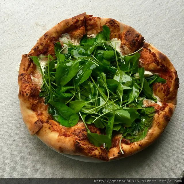 披薩的橄欖油淋的不少,拿起來會以為披薩很油,但吃起來卻不會很油膩