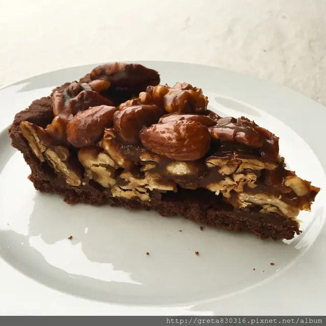 它是由巧克力餅乾、巧克力醬、堅果和焦糖所組成的