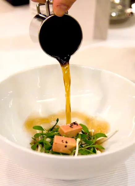 服務生在桌邊一倒完高湯,可以想像鴨肝遇熱入嘴的滑嫩口感 -