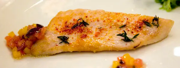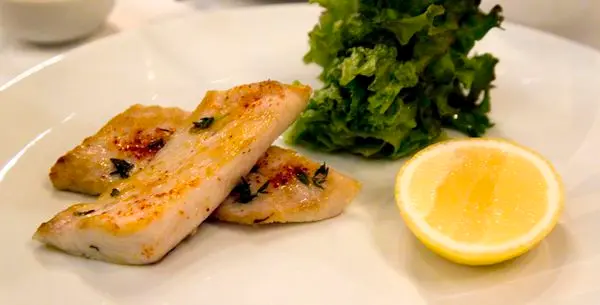 魚本身以簡單的調味兩面煎至上色,另外還附有漬蔬菜橄欖,