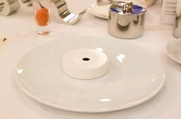 原來盛鍛上每份甜點拖盤底部都有個凸起物,