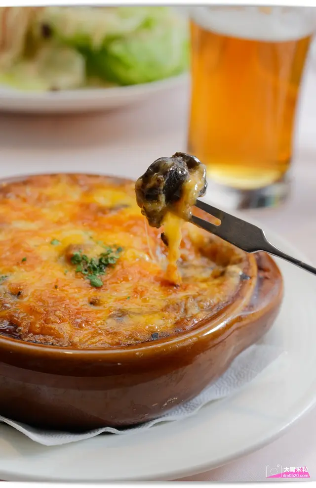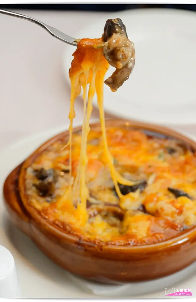 接著上桌是熱呼呼的焗烤田螺,看看起司的牽絲誘人狀!
