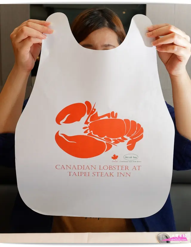 接著服務人員送上牛排刀叉、蟹叉、吃龍蝦必備的專屬紙圍裙