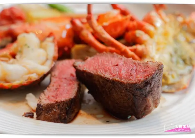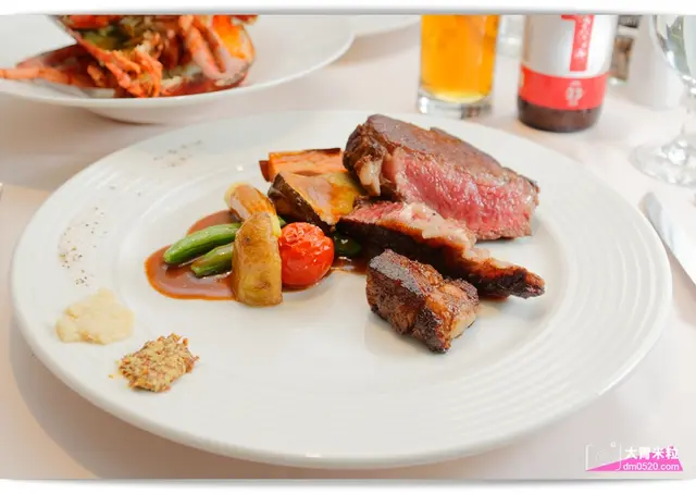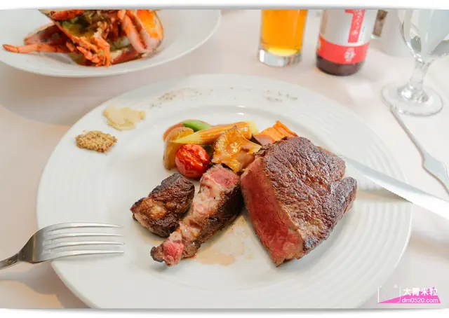 海陸套餐除了龍蝦乙尾,還有三款牛排+戰斧豬排可選,我們選了油脂豐富的肋眼牛排!