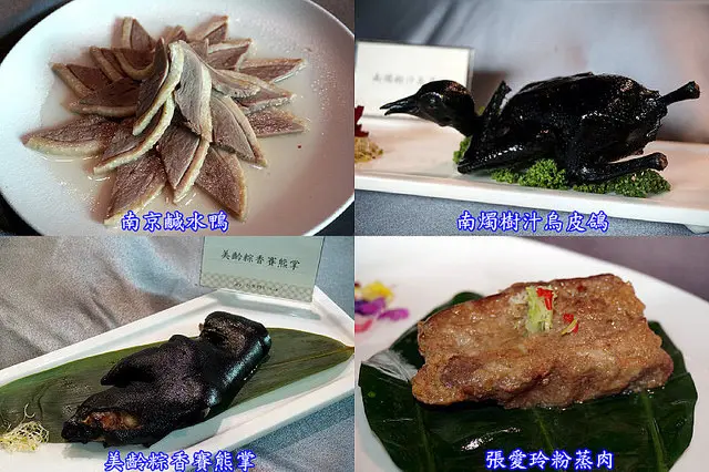 南京的黑官膳,在二、三十年代,南京的達官貴人中非常流行。以烏飯樹葉做天然染料讓食物上色成為「黑菜」,素以做法考究出名,不放人工調味品,靠的是燒、燉、煮的功夫。此道菜膠質豐富、美容養顏,是宋美齡最愛的一道黑官膳,黑色豬爪像是熊掌,故名為「賽熊掌」,另一道「南燭樹汁烏皮鴿」亦是宋美齡喜愛的黑官膳料理代表菜色。