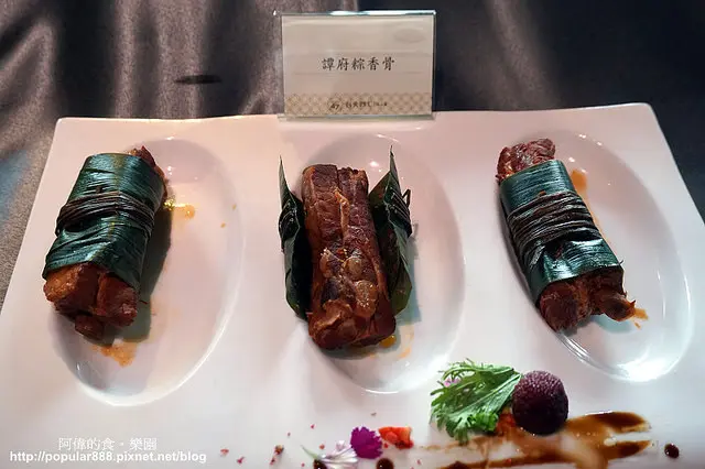 黃清標汲取譚府宴客大菜其中的精神,改良了排骨。留下「偷樑換柱」原來添蔥的美意,更增加創意,以竹葉、稻繩增香,燒出了新鮮感。