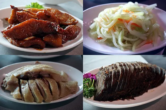 蔗糖燻魚塊、花椒蒿筍絲、南京鹹水鴨、五香醬牛肉