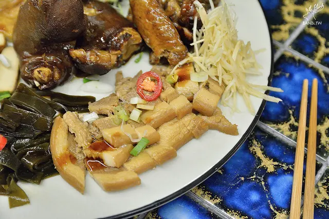 「咚-咚-咚」,店內人員用刀子在砧板上切肉、蔥花的聲音,接著一盤盤的滷味就放置在檯面上,不需要太多裝飾,這些滷味看起來就夠吸引人了!