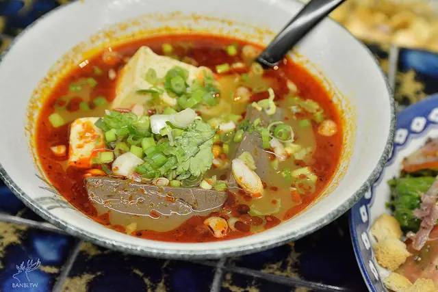 鴨血新鮮,口感Q軟,湯頭倒不像印象中的麻辣鴨血味道,這裡的吃起來清香不油。