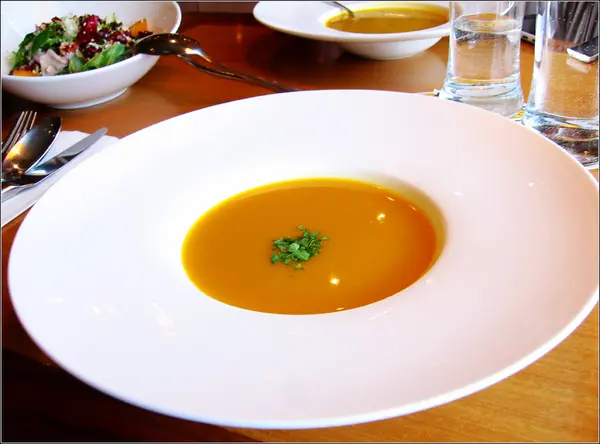 南瓜湯保有一定熱度,入口後透心的溫熱舒服感,就已經成功一大半