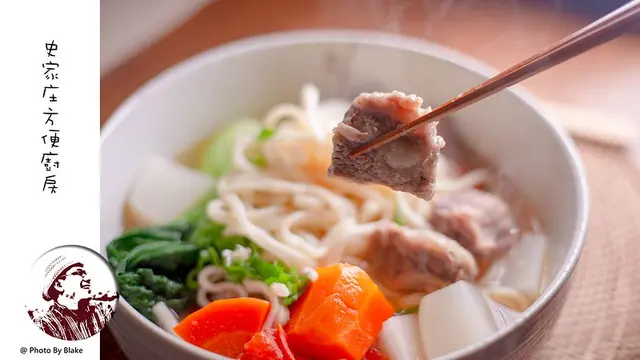 除了清燉牛肉湯之外,史家庄方便廚房清燉牛肉湯也能快速的出一碗清燉牛肉麵,一樣用紅白蘿蔔與蕃茄去搭配清燉牛肉湯來煮,另一邊煮麵條及青江菜,青江菜煮熟後放冰塊,賣相會比較好一些而且也比較不會有土味,最後將清燉牛肉湯倒入麵碗裡,一份清燉牛肉麵就完成了,整個份清燉牛肉湯包組雖然說是四人份享用,但如果搭配上麵的部份大概五個人吃都沒問題,清爽的湯頭還滿暖胃的,像我們家布小啾吃起來也很開心,用這個清燉牛肉湯來煮麵,你也不用太擔心小孩子能不能吃,因為整湯包組都沒有任何化學添加物,吃起來真的很安心。