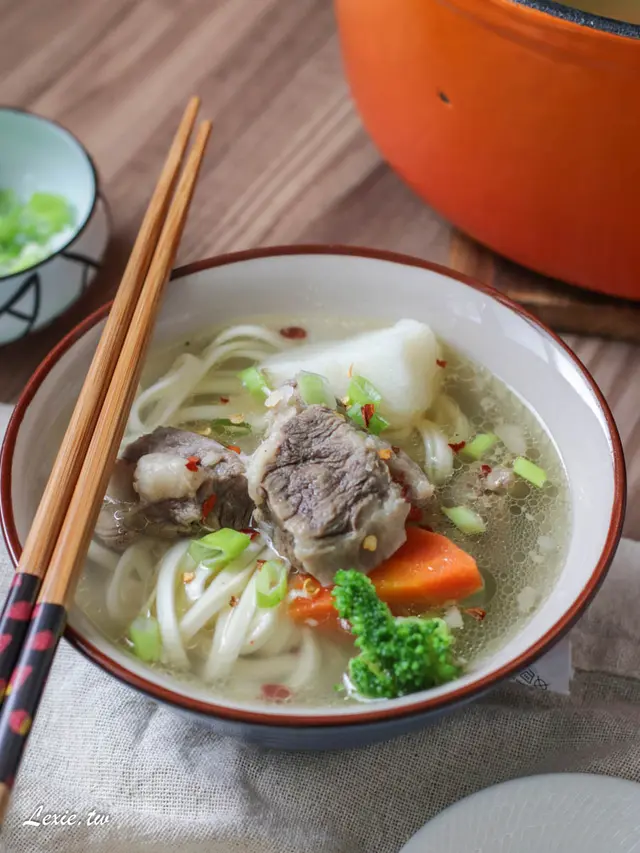 ▲第二次煮我就煮了一點陽春麵,當作清燉牛肉麵來吃更有飽足感。我比較龜毛,麵是另外煮完放在碗裡,再加湯進去,比較不會破壞湯頭的清澈感。