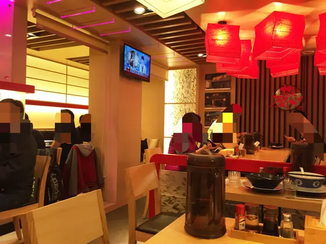 木質桌椅和紅色的裝飾整間店看起來很明亮,位置不算多,但以這樣下雨天又有點晚的時間人倒是不少。