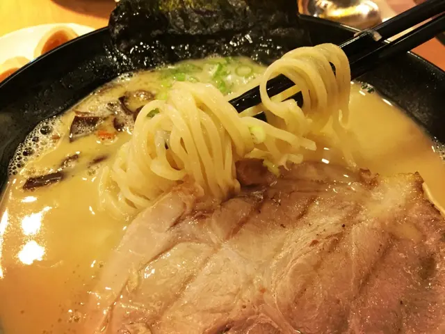 一吃果然有一種鮮味,和一般豚骨的不一樣,覺得太鹹的話,可以跟店員要高湯自己加(先偷喝一口高湯是沒有鹹的喔!)