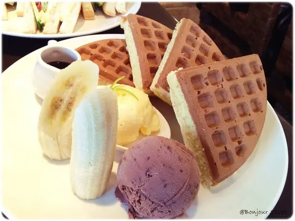 香蕉巧克力鬆餅是我最愛的一種口味,原本覺得這兩樣東西聽起來一點也不搭,沒想到這個組合卻是異常的好吃。