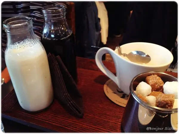 咖啡歐雷,就是我一直難以忘懷的記憶中的咖啡。牛奶與咖啡是分開裝在小瓶子裡的,可自由調配咖啡的濃度,還附上了糖罐調製甜度。咖啡歐雷,我通常都是咖啡與牛奶的比例各半不加糖,喝起來最順口。