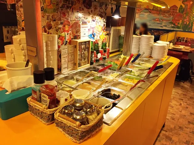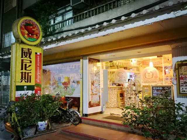 這間威尼斯是之前經過幾次看到人都蠻多的,菜單就貼在門口,是吃義大利麵和披薩的,還有自助沙拉吧,菜色很豐富呢!