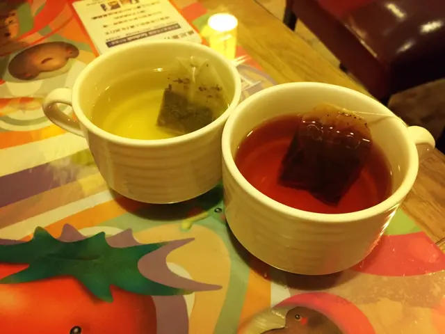 自助吧都是可以無限取用的喔!所以飯後我們又來了兩杯熱茶,紅茶和綠茶包自己泡的。
