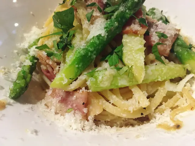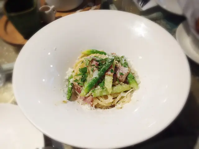 培根蘆筍麵看起來就好好吃,清炒的義大利麵蓋上鮮嫩多汁的蘆筍和培根,撒上起司粉,拌一拌就很好吃。