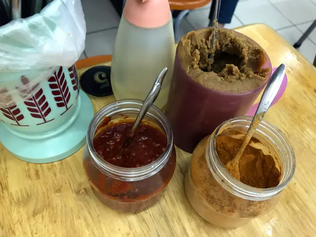 桌上放著辣油和辣粉及另外的辣椒可添加,內用湯可以免費續一次,建議先品嚐原味的湯頭,等湯剩下一半以下,續湯後再依個人口味添加辣油和辣粉,建議加了辣油的湯頭可是再升級,口感的層次更豐富,好像喝了另一種湯的感覺,非常值得一試。