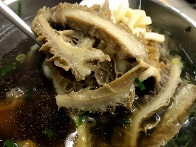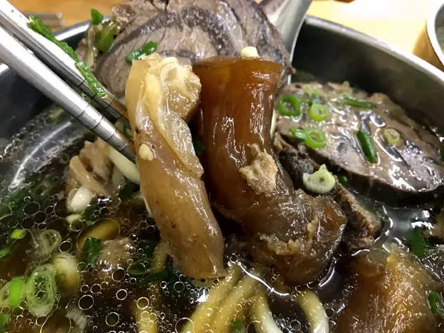 牛肚麵200元,上次沒有點過,這次就來吃看看,牛肚處理的很好,吃起來很嫰好入口,也不會有膩膩的感覺,份量真不少,一碗少說也有十幾個,可以說是真材實料。這湯頭應該算是這間店的招牌,感覺有加中藥熬煮的湯頭,喝起來味道就是不太一樣,雖然是濃郁的牛肉湯,卻有種清甜的味道,不過這次來喝多了覺得有點偏鹹。麵條部分不會太軟,吃起來有點彈性,是我比較喜歡的口感。