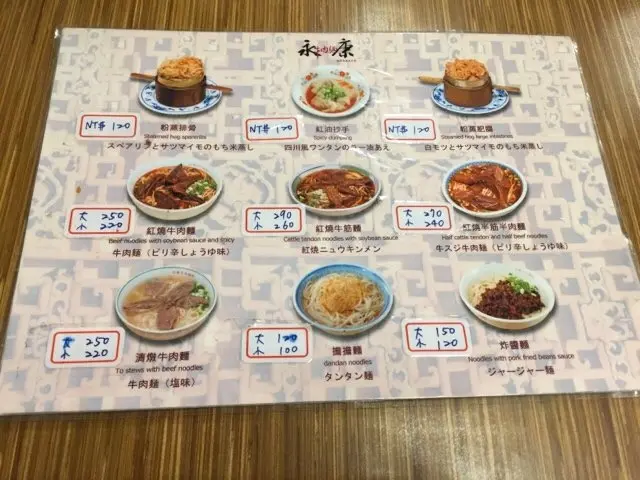 菜單和外面牆上是一樣的內容圖文並茂多國說明,不過價格會有所變動,一碗牛肉麵已經快300,之前看過才200左右,真是不便宜。