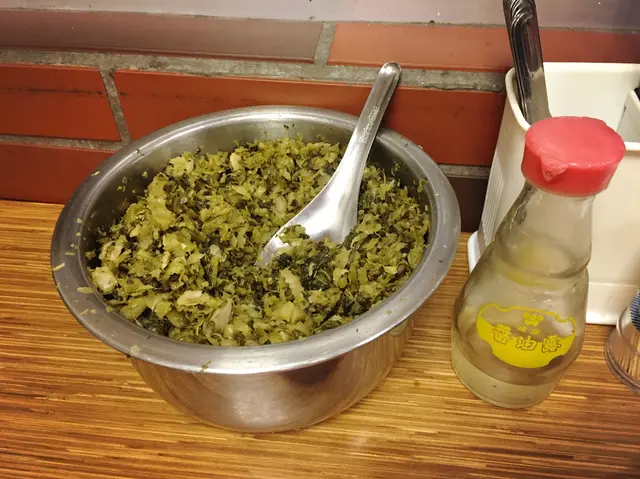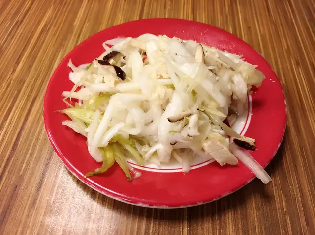 桌上有酸菜提供,是比較乾的那種,我們吃牛肉麵都不加,吃原味的。