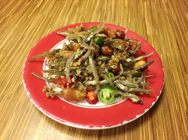 小魚干花生60元,有偏辣和偏甜口味,我們選偏甜口味,脆脆的小魚還吃得到顆粒的糖,微辣滋味好吃又開胃。