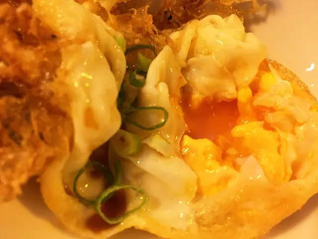 炸蛋20元,外表炸得有點焦香,蛋黃還是半熟的,一點醬油膏還真好吃。