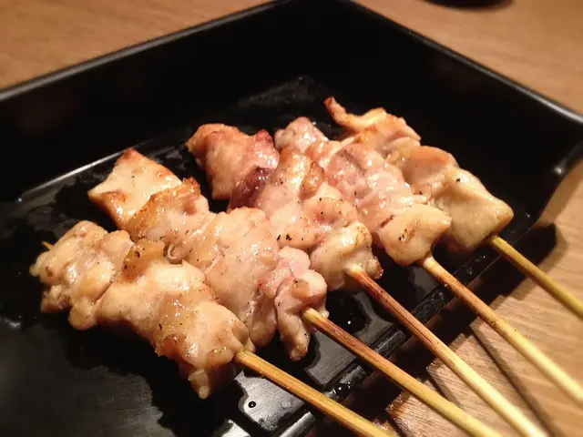 雞心很貼心的剖半後串起,薄片燒烤更入味,值得一試。