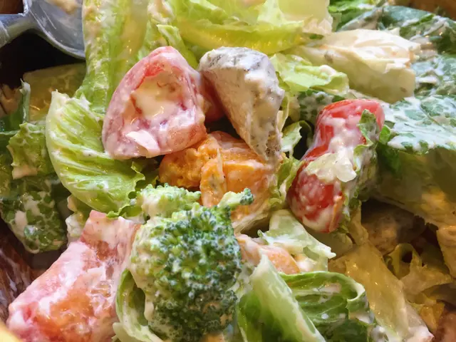 凱薩雞肉沙拉180元,濃濃的凱薩醬毫不客氣的大把淋在生菜上,番茄、南瓜、花椰菜和生菜的配色很美,口感也很新鮮。