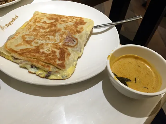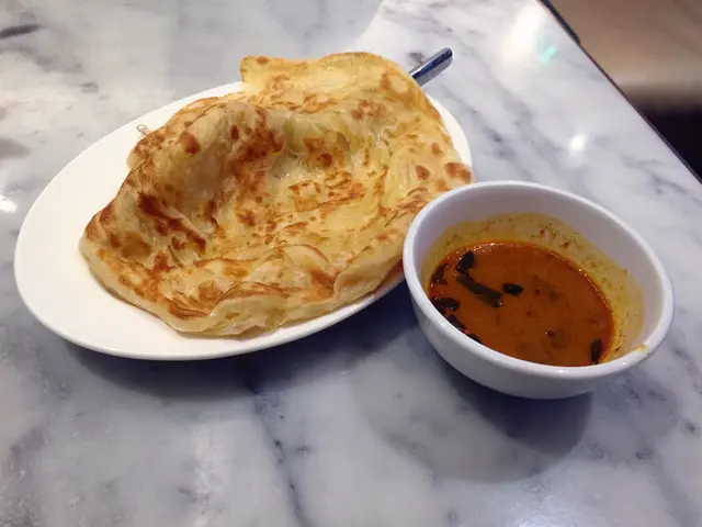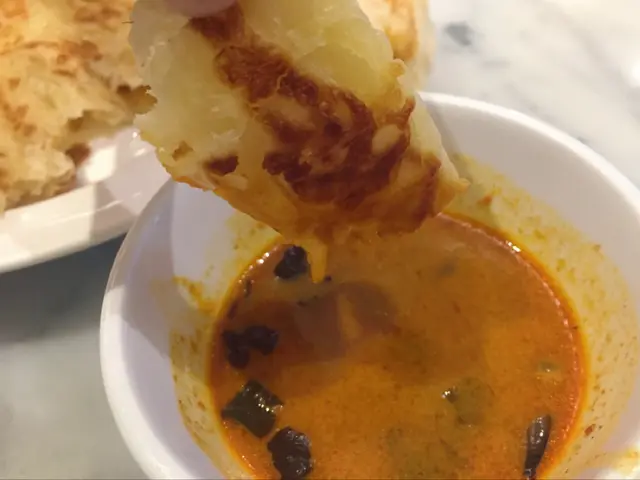 爸爸烤餅+咖哩汁,我一直很愛印度烤餅沾咖哩那樣吃,咖哩不用有料沒關係,只要咖哩醬的味道好就可以吃得津津有味。這個餅的份量不會太大,所以要是喜歡吃的人,一個人也可以吃完,烤得香香帶有一點酥,吃起來微微的嚼勁,雖是南洋風的咖哩,但是還好椰汁的味道不會太重,因為我是不愛椰汁太重的咖哩,但我還是一個人把它吃光光了。