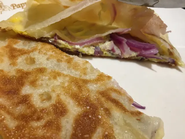 爸爸洋蔥蛋拋餅+咖哩汁,這是第二次去A9點的,想說來吃吃看裡面夾了洋蔥的應該會更有口感。不過這樣變成裡面好像有夾心,雖然洋蔥吃起來是甜味的也不錯,但我還是喜歡上次吃過的原味,比較純粹的口感。