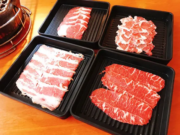 來吃燒肉我最重視的當然就是肉了!肉的品質好,烤起來才會好吃,選擇899元的價位就是肉的選擇更多,也可以吃到霜降牛、牛舌、牛排和鹿兒島黑豚等上質好料。首先就是來這幾盤,建議從油花比較多的開始烤,這樣火會燒得比較快,之後就越烤越順了。