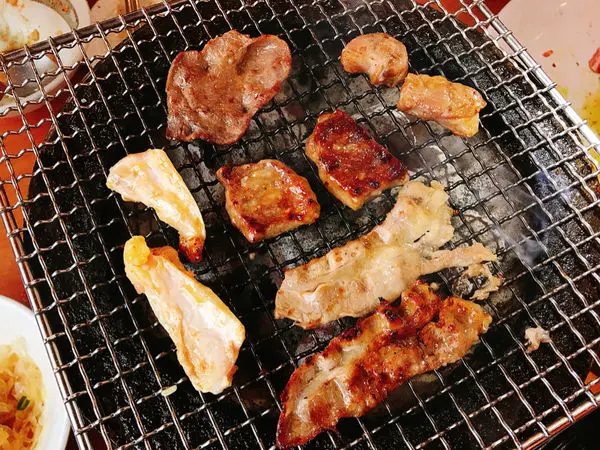 看到烤爐上桌就是準備開動啦!每桌都有抽油煙機,所以煙味不算很重,服務人員上菜時也很親切說明菜色,有的肉品要怎麼烤也會幫忙,就是要讓大家能吃到最好吃的料理啊!