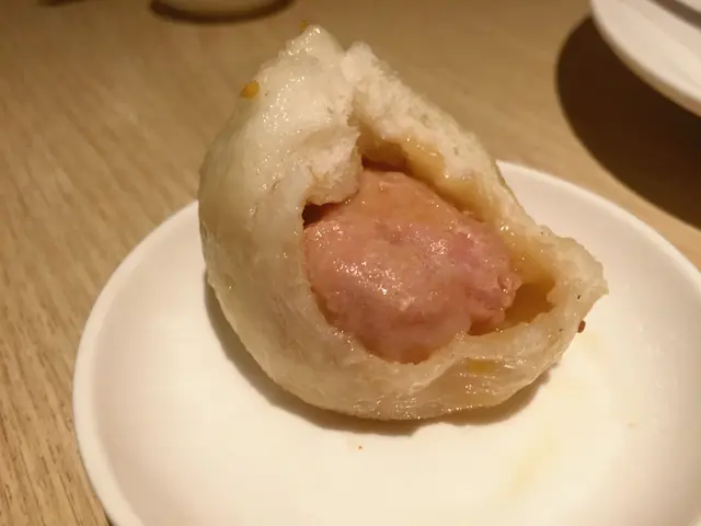 一咬下算是皮薄餡多,裡面的餡料都是肉,我是比較喜歡有一點菜的口感,所以覺得肉味稍重了一些。