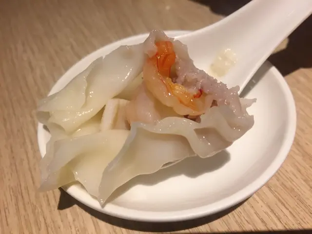蝦貝鮮肉餛飩湯150元,老實說有點小碗,畢竟一碗可是150元耶!不過每一顆餛飩裡都有蝦還算是真材實料。
