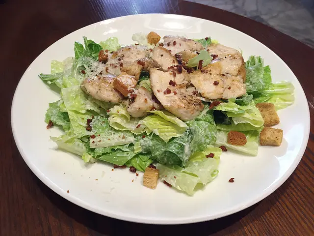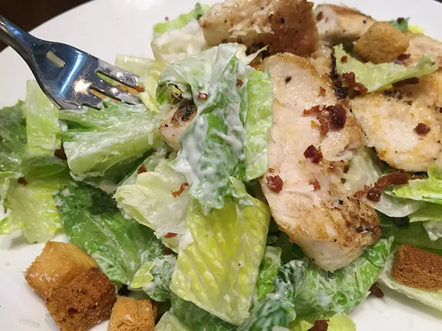 香煎雞肉搭配蒜香凱薩沙拉190元,夏天很喜歡吃沙拉,吃到蔬菜,但是搭配凱薩醬味道又夠,就覺得很好吃。
