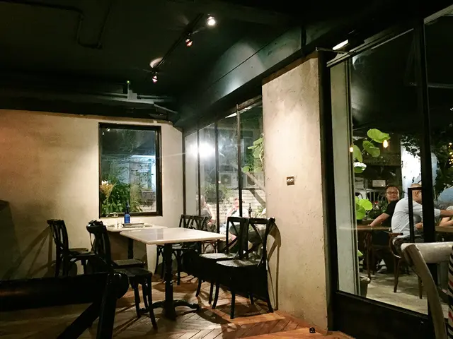 晚上的氣氛感覺很棒,大片落地窗,以及昏黃的燈光,有一種復古又摩登的味道。