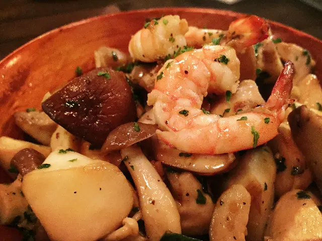 雪莉酒炒野菇鮮蝦360元,很好吃的一道前菜,多種不同菇類搭配以剝殼的鮮蝦,多種辛香料炒過。