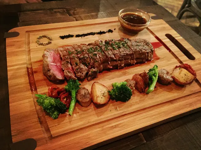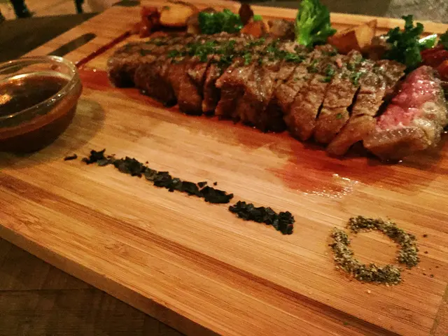 而且擺盤看起來好美,牛排也都切好了喔!建議七分的熟度,旁邊烤過的蔬菜也都蠻好吃的。