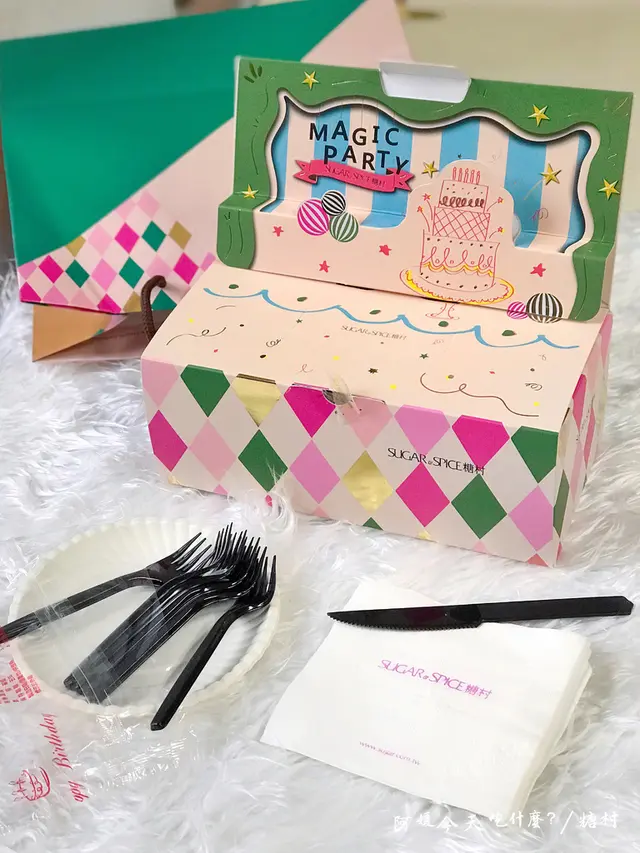 打開裡面就是裝著哈尼捲的盒子、附一個紙袋,還有刀叉跟盤子