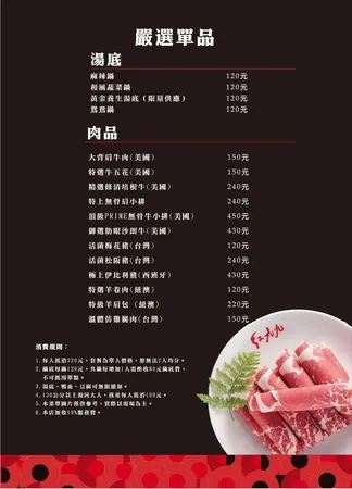 肉的部分有精選修清培根牛、特上無骨肩小排、活菌松阪豬、特級羊肩包共四種可選,