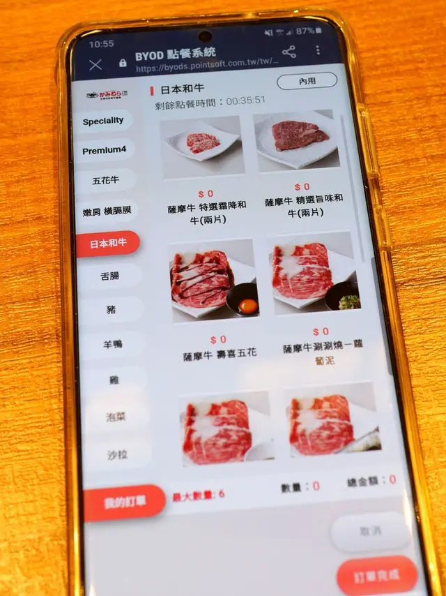 (我的S20+,薩摩牛就只有特選霜降、精選旨味、壽喜五花、部位不明的涮涮燒,四種)