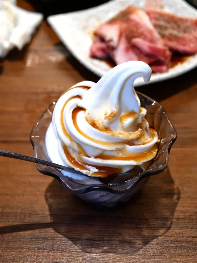 (只能點一次的甜點不錯,黃豆粉黑糖霜淇淋)