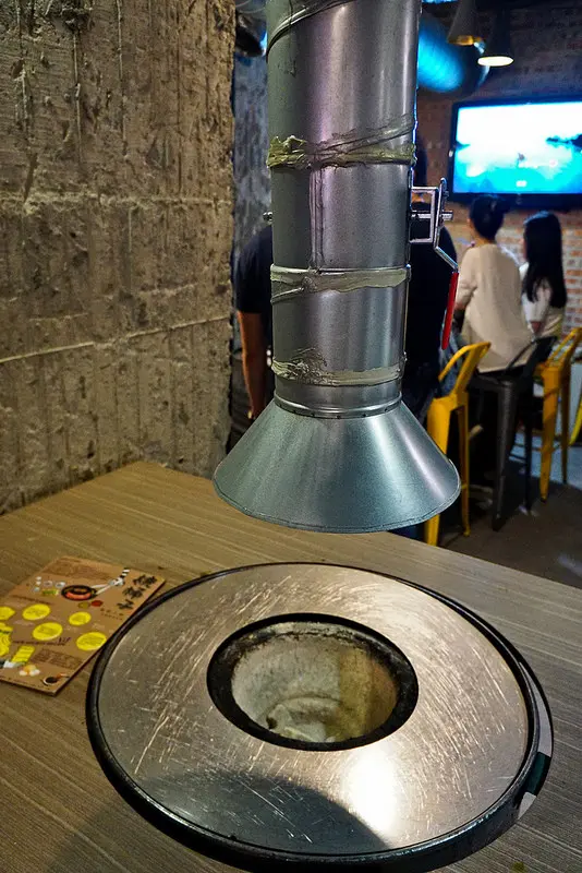我這桌就是剛好以鐵桶與桌面的組合,頂上有抽油煙機
