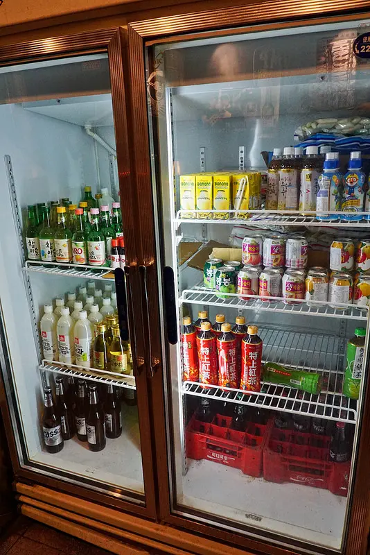 店內有很多韓國飲料,常見的香蕉牛奶,白葡萄汁等都有