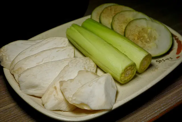 大黃瓜,很大顆的玉米筍,杏鮑菇